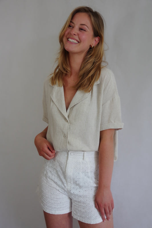 Résumé - elastische katoenen short gebroken wit