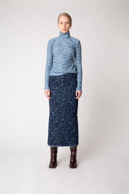 Jhenit - hoog getailleerd gebreide midi-rok met bruine print
