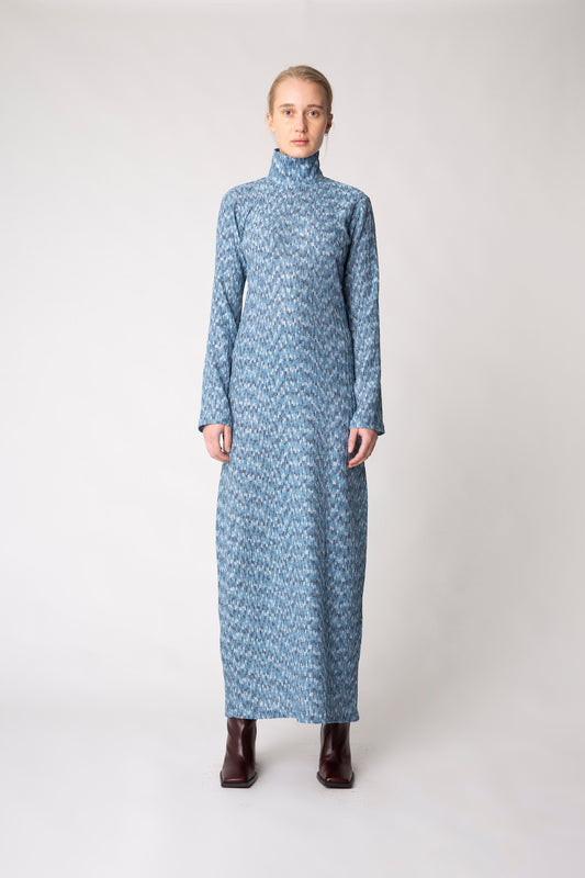 Résumé - Blauwe jurk met vierkant patroon structuur