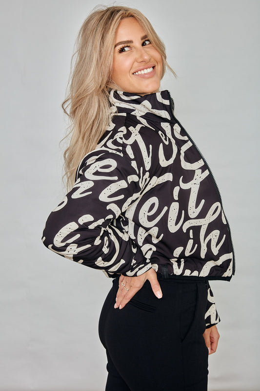 AanbiedingJhenit- korte gewatteerde jas met logo