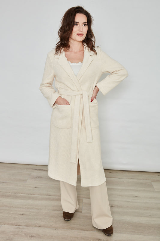Résumé - Gebreide vest met strikceintuur aan de voorkant